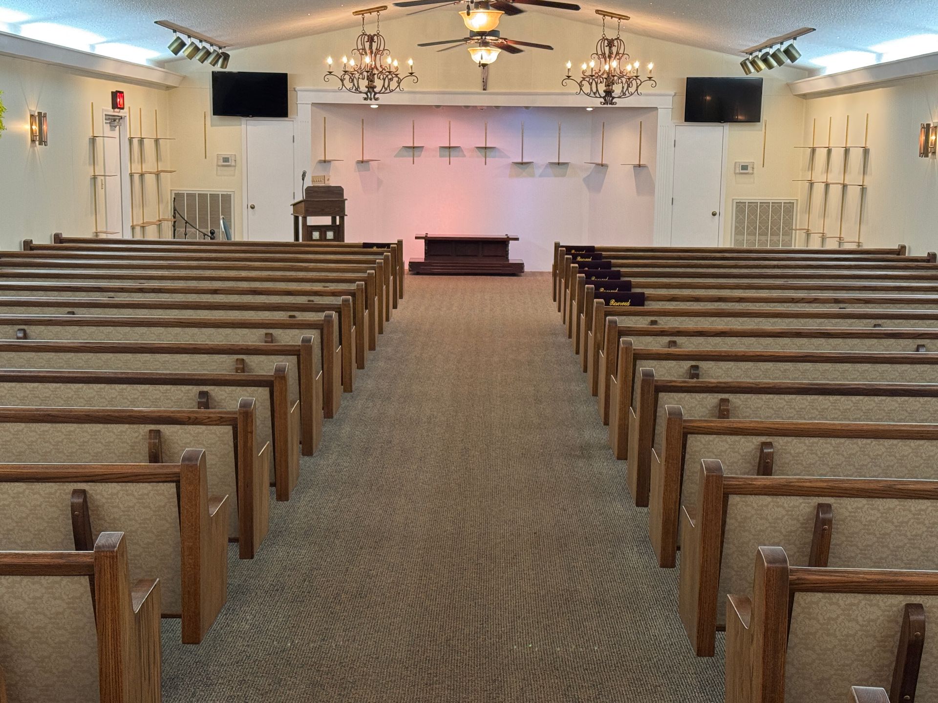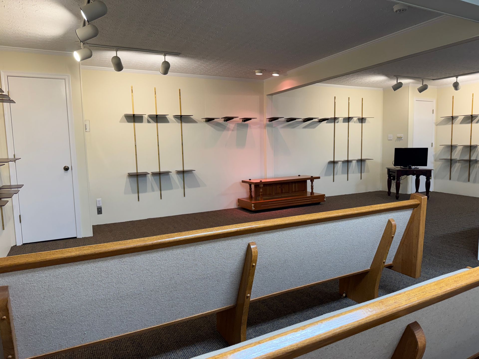 Chapel A, or our main chapel, is located on the west end of the building. Built in 1985, it has a seating capacity of approximately 225 people, and is perfect for larger crowds or public services.